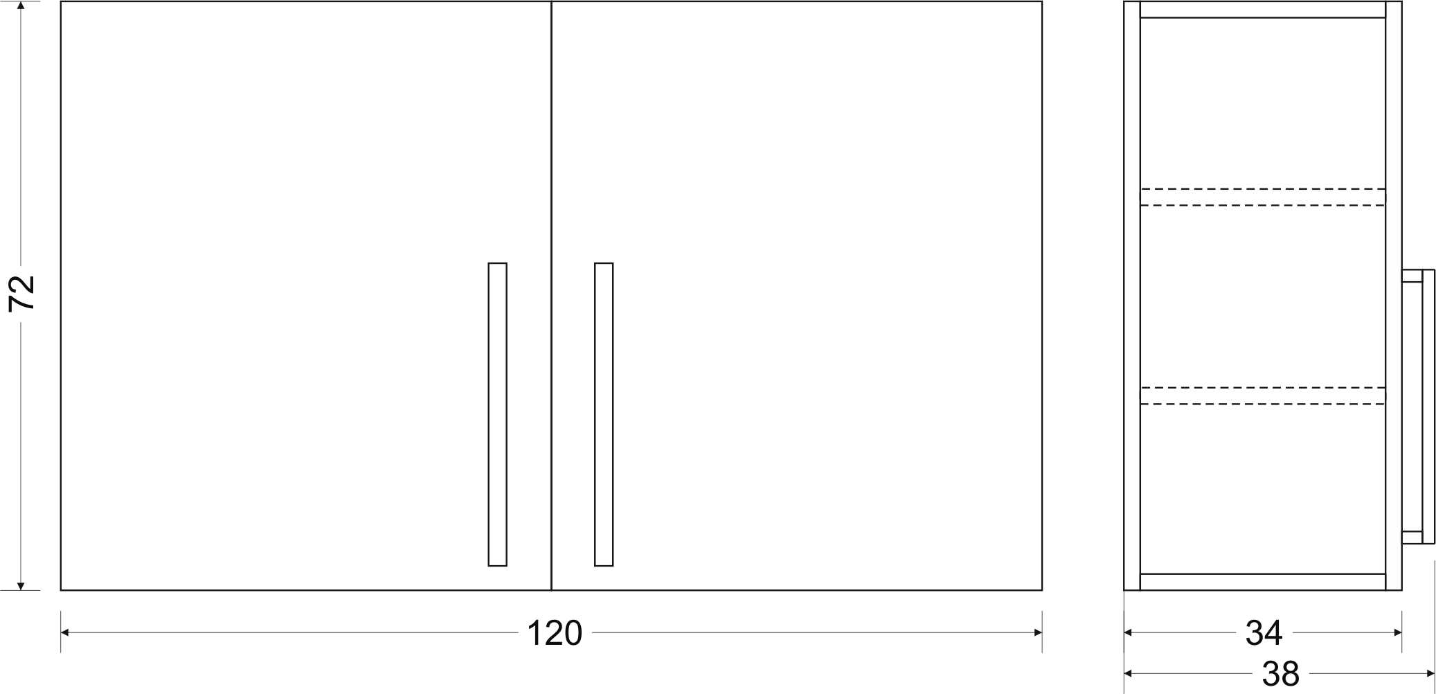 Le corps et les portes sont en métal à double paroi revêtu de poudre. Les portes sont équipées d'un système de fermeture en douceur. Nous proposons également deux hauteurs différentes. Chaque unité murale est livrée avec une étagère variable dans la hauteur 560 et avec deux étagères variables dans la hauteur 720. Un rail de montage est déjà inclus pour une fixation facile et pratique.